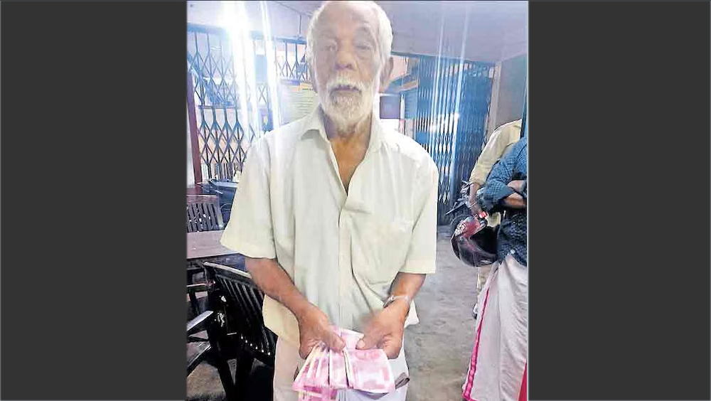 20,000 രൂപ വിലവരുന്ന മരങ്ങളാണ് അയ്യപ്പൻ വിറ്റത്. പിന്നാലെ 2000 രൂപയുടെ 10 നോട്ടുകൾ നൽകുകയായിരുന്നു. ഓർമക്കുറവുള്ള അയ്യപ്പൻ 2000 നോട്ട് നിരോധിച്ച കാര്യം പണം കൈപ്പറ്റിയ സമയത്ത് ഓർമ വന്നില്ല. പിന്നാലെ കടയിൽ പണവുമായെത്തിയപ്പോഴാണ് നോട്ട് എടുക്കില്ലെന്ന കാര്യം അയ്യപ്പൻ തിരിച്ചറിഞ്ഞത്.