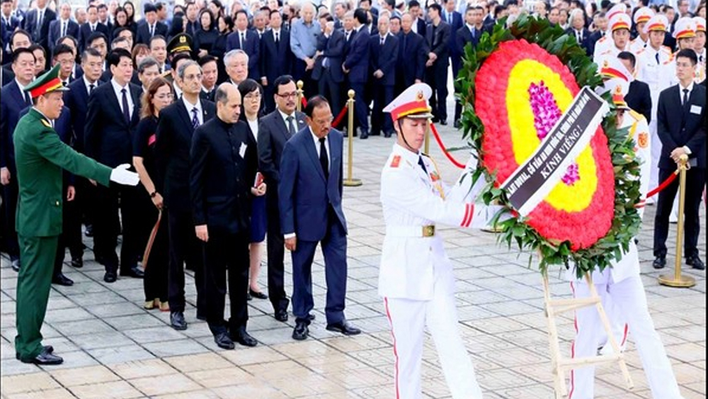 പ്രതിരോധ മന്ത്രി രാജ്നാഥ് സിംഗ് ഡൽഹിയിലെ വിയറ്റ്നാം എംബസി സന്ദർശിച്ച് അനുശോചനം രേഖപ്പെടുത്തി. ന്യുയെൻ ഫു ട്രോങ്ങിന്റെ ചിത്രത്തിന് മുൻപിൽ അദ്ദേഹം പുഷ്പചക്രം അർപ്പിച്ചു.