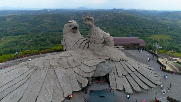 ത്രേതായുഗത്തിലെ പ്രൗഢികളിലേക്ക് ചിറകുവിടർത്തുകയാണ് പശ്ചിമഘട്ട സാനുക്കളുടെ മടിത്തട്ടായ ജടായുപ്പാറ. സമുദ്ര നിരപ്പിൽ നിന്നും 1,200 അടി ഉയരത്തിലാണ് 65 ഏക്കറിൽ പരന്ന് കിടക്കുന്ന ജടായു ശിൽപം.ലോകത്തിലെ ഏറ്റവും വലിയ പക്ഷിശിൽപമാണിത്. 2017-ലാണ് ഇത് നിർമിച്ചത്.