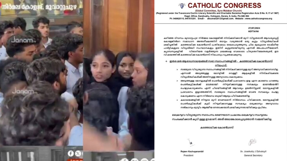 കലാലയങ്ങളിൽ നിസ്കാര മുറി വേണമെന്ന് നിർബന്ധം പിടിക്കാതെ, മോസ്കുകളിൽ പെൺകുട്ടികൾക്ക് കൂടി നിസ്കരിക്കാനുള്ള സൗകര്യമൊരുക്കാനും അനുവാദം നൽകാനും മുസ്ലീം ആത്മീയ നേതാക്കൾ ശ്രദ്ധിക്കുന്നതായിരിക്കും ഉചിതമെന്നും കത്തോലിക്ക കോൺഗ്രസ് പറഞ്ഞു. സഭയുടെ വിദ്യാഭ്യാസ സ്ഥാപനങ്ങളിൽ നിസ്കരിക്കുന്നതിനുള്ള മുറി അനുവദിക്കാനാകില്ലെന്നും അടുത്തുള്ള മോസ്കിൽ വെള്ളിയാഴ്ചകളിൽ നിസ്കരിക്കേണ്ട വിദ്യാർത്ഥികൾക്ക് നിസ്കരിക്കാനുള്ള അനുവാദമുണ്ടായിരിക്കുമെന്നും വ്യക്തമാക്കി.