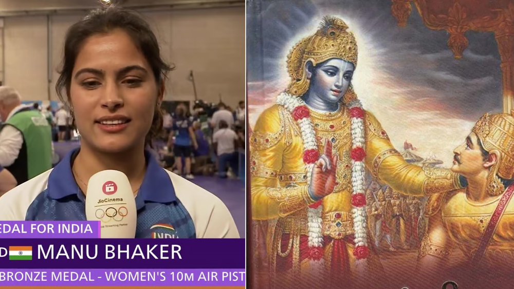 പാരിസ് ഒളിമ്പിക്സിൽ ഇന്ത്യക്ക് ആദ്യ മെഡൽ സമ്മാനിച്ചത് മനു ഭാക്കറായിരുന്നു. 10 മീറ്റർ എയർ പിസ്റ്റൾ വിഭാഗത്തിൽ പൊന്നിന്റെ തിളക്കമുള്ള വെങ്കലമാണ് താരം സ്വന്തമാക്കിയത്. 243.2 എന്ന ഗെയിംസ് റെക്കോഡോടെ സ്വർണം നേടിയ കൊറിയയുടെ കിം യെജിക്കും ജിൻ യെ ഓക്കും പിന്നിൽ മൂന്നാം സ്ഥാനത്താണ് ഭാക്കർ ഫിനിഷ് ചെയ്തത്. അവസാന ഷോട്ടുകളിൽ ഏകാഗ്രത പാലിക്കാനും ആ സമയം ശാന്തമായിരിക്കാനും ഭഗവത് ഗീത വായിക്കുന്നത് തുണച്ചുവെന്നാണ് മനു മെഡൽ നേട്ടത്തിന് ശേഷം വ്യക്തമാക്കിയത്.