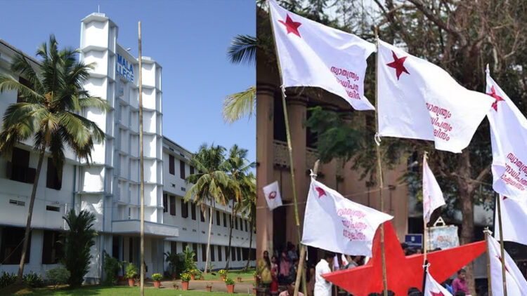 മുവാറ്റുപുഴ: മൂവാറ്റുപുഴ നിർമ്മല കോളേജിൽ നിസ്കാരത്തിന് പ്രത്യേകം സ്ഥലം ഒരുക്കണമെന്ന് ആവശ്യപ്പെട്ട് നടത്തിയ പ്രതിഷേധം വിവാദമായതോടെ തലയൂരാനുള്ള ശ്രമവുമായി എസ്എഫ്ഐ. ഒരു പ്രത്യേക മതവിഭാഗത്തിന് ആരാധന നടത്താൻ വേണ്ടി തങ്ങൾ സമരം നടത്തിയിട്ടില്ലെന്നും, നടക്കുന്നത് വ്യാജപ്രചരണമാണെന്നും എസ്എഫ്ഐ നേതൃത്വം അവകാശപ്പെടുന്നു. എസ്എഫ്ഐ സംസ്ഥാന നേതൃത്വവും, മുവാറ്റുപുഴ ഏരിയ കമ്മിറ്റിയും ഇത് സംബന്ധിച്ച് പ്രസ്താവന പുറത്തിറക്കിയിട്ടുണ്ട്. കോളേജിലെ മാത്സ് ഡിപ്പാർട്ട്മെന്റിൽ പ്രാർത്ഥനാ വിഷയവുമായി ബന്ധപ്പെട്ട് ഒരു വിദ്യാർത്ഥിനിക്കുണ്ടായ അനുഭവത്തിൽ മറ്റ് വിദ്യാർത്ഥികൾ പ്രതിഷേധം സംഘടിപ്പിച്ചതാണെന്നും, അത് എസ്എഫ്ഐയുടെ നേതൃത്വത്തിൽ ആയിരുന്നില്ലെന്നുമാണ് എസ്എഫ്ഐ ഏരിയ കമ്മിറ്റി പുറത്ത് വിട്ട പ്രസ്താവനയിൽ അവകാശപ്പെടുന്നത്.