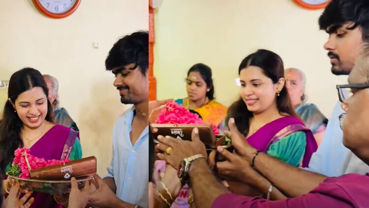 പുടവയും താലിയും വിവാഹ ക്ഷണക്കത്തും പൂക്കളുമാണ് ക്ഷേത്രത്തിൽ പൂജിച്ചത്. പൂജയ്ക്ക് ശേഷം ലഭിച്ച ചരട് വധുവരന്മാരുടെ കയ്യിൽ അശ്വിന്റെ അമ്മ കെട്ടികൊടുക്കുന്നുണ്ട്. താലിയിൽ പ്രത്യേകതകളുണ്ടാകുമോയെന്നാണ് ഇരുവരുടെയും ആരാധകർക്ക് അറിയേണ്ടത്. സെപ്റ്റംബറിൽ നടക്കുന്ന വിവാഹം തമിഴ് ബ്രാഹ്മണ ആചാരപ്രകാരമായിരിക്കും എന്ന സൂചനയുണ്ട്.