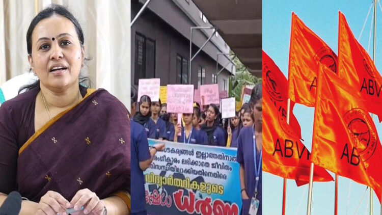 ആരോഗ്യമന്ത്രിയുടെ നാട്ടിലെ നേഴ്സിംഗ് കോളേജ്; ഇങ്ങനെയാണെങ്കിൽ എങ്ങനെ വിദ്യാർത്ഥികൾ പ്രതിഷേധിക്കാതിരിക്കുമെന്ന് എബിവിപി