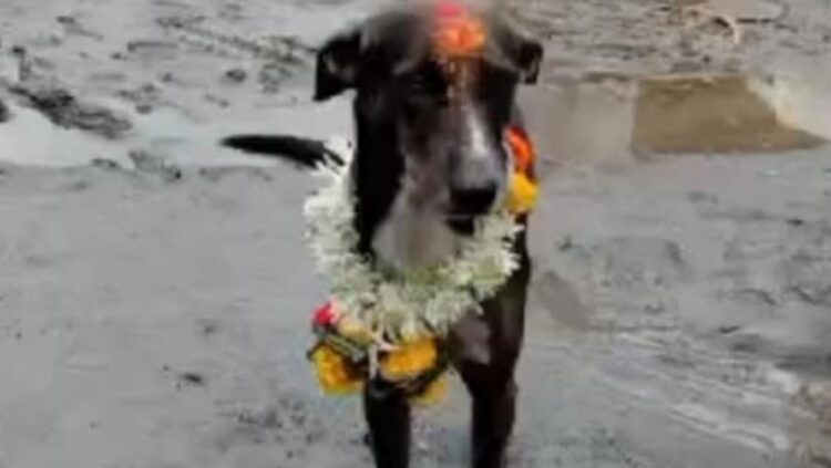 കാണാതായി എന്നു കരുതിയ നായ തിരികെ നാട്ടിലെത്തിയപ്പോൾ വൻ സ്വീകരണം നൽകി ഒരു ഗ്രാമം. ബെലഗാവി ജില്ലയിലെ നിപാനിതാലൂക്കിലെ യമഗർണി ഗ്രാമമാണ് അടുത്തിടെ ഒരു വിചിത്രമായ കാഴ്ചയ്ക്ക് സാക്ഷ്യം വഹിച്ചത്. ദക്ഷിണ മഹാരാഷ്ട്രയിലെ തീർത്ഥാടന പട്ടണമായ പന്ദർപൂരിൽ ‘മഹാരാജ്’ എന്ന് വിളിക്കപ്പെടുന്ന നായയെ കാണാതാവുകയായിരുന്നു. നാട്ടുകാർ പലയിടത്തും തിരഞ്ഞെങ്കിലും നായയെ കണ്ടുകിട്ടിയില്ല. മരിച്ചിട്ടുണ്ടാവും, ഇനി മടങ്ങി വരില്ല എന്നും നാട്ടുകാർ ഓർത്തു. എന്നാൽ ദിവസങ്ങൾക്ക് ശേഷം സ്വന്തം നാട്ടിലേക്ക് അവൻ തിരികെ വന്നു.