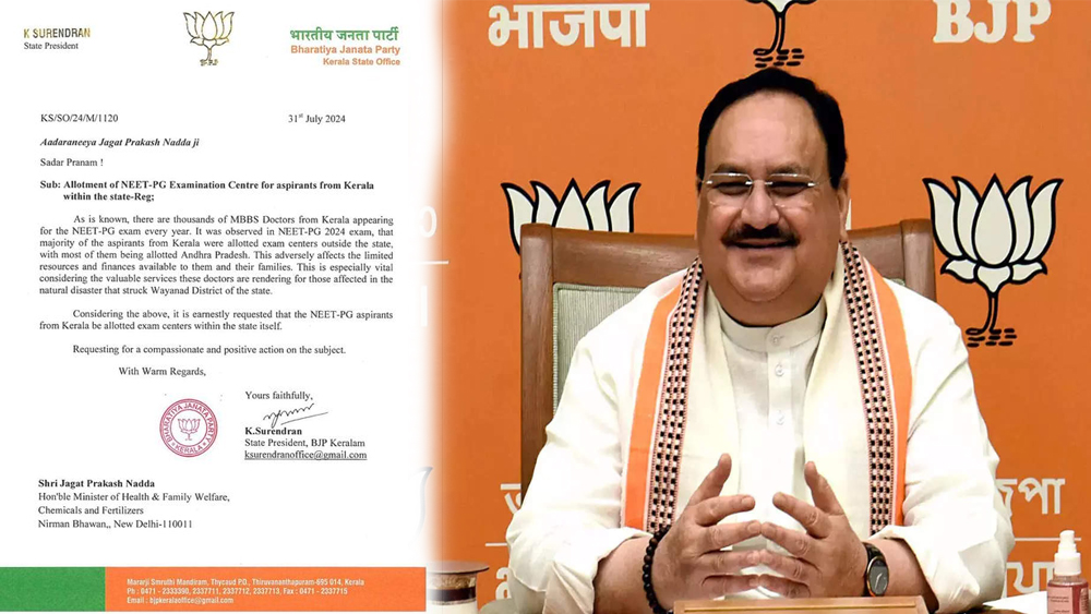കേരളത്തിൽ നീറ്റ് പരീക്ഷ കേന്ദ്രം അനുവദിച്ച നരേന്ദ്രമോദി സർക്കാരിന് ബിജെപി സംസ്ഥാന അദ്ധ്യക്ഷൻ കെ.സുരേന്ദ്രൻ നന്ദി അറിയിച്ചു. കേരളത്തിൽ എക്സാം സെന്റർ അനുവദിക്കുകയെന്നത് എംബിബിഎസ് ഡോക്ടർമാരുടെ നിരന്തരമായ ആവശ്യമായിരുന്നു. ഈ ആവശ്യമുന്നയിച്ച് കേന്ദ്ര ആരോഗ്യമന്ത്രി ജെ. പി നദ്ദയ്ക്ക് ജൂലായ് 31 ന് നിവേദനം നൽകുകയും ഫോണിൽ സംസാരിക്കുകയും ചെയ്തിരുന്നു.