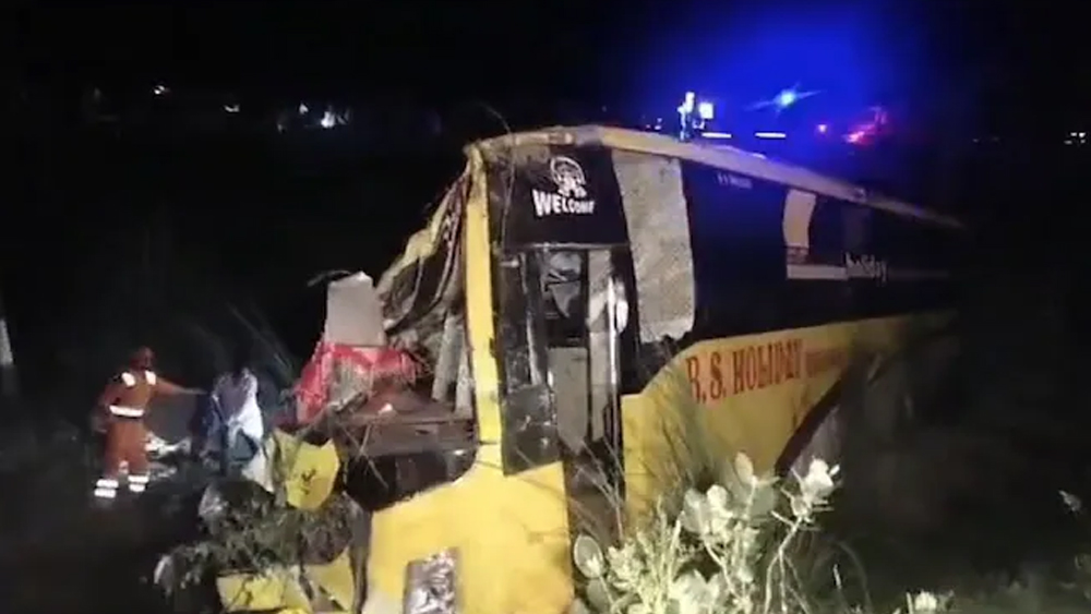 60 ഓളം യാത്രക്കാരാണ് ബസിൽ ഉണ്ടായിരുന്നത്. അതിൽ നാല് യാത്രക്കാർ മരിച്ചതായും 25 ഓളം പേർക്ക് പരിക്കേറ്റതായും സീനിയർ പൊലീസ് സൂപ്രണ്ട് സഞ്ജയ് കുമാർ വർമ പറഞ്ഞു. കാറിലുണ്ടായിരുന്ന മൂന്ന് പേരും മരിച്ചു. കാർ ഡ്രൈവർ ഉറങ്ങിപ്പോയതാണ് അപകടത്തിന് കാരണമായതെന്നാണ് പ്രാഥമിക വിലയിരുത്തൽ. പരിക്കേറ്റവർക്ക് മികച്ച ചികിത്സ ലഭ്യമാക്കാൻ സർക്കാർ ഭാഗത്ത് നിന്ന് വേണ്ട നടപടികൾ കൈക്കൊണ്ടിട്ടുണ്ടെന്നും വർമ കൂട്ടിച്ചേർത്തു.