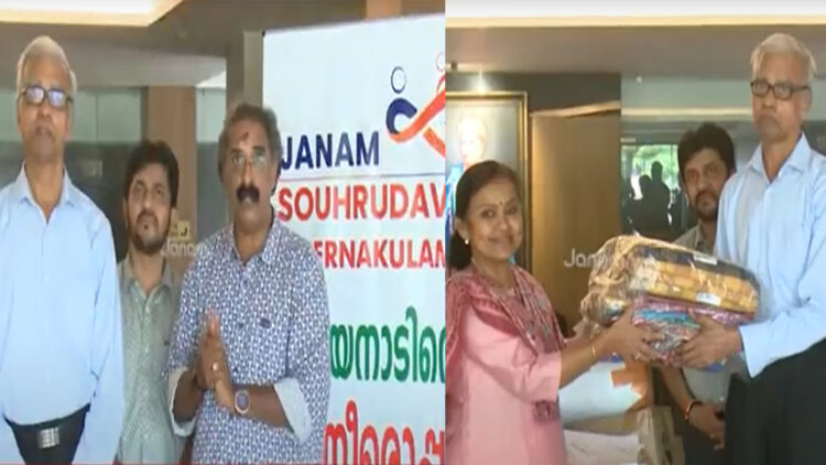 കൊച്ചി: ഉരുൾപൊട്ടൽ ദുരന്തത്തിൽ ഉറ്റവരെയടക്കം നഷ്ടപ്പെട്ട് ദുരിതാശ്വാസ ക്യാമ്പുകളിൽ കഴിയുന്നവർക്ക് കൈത്താങ്ങാവുകയാണ് ജനം ടി വി യും, ജനം സൗഹൃദ വേദിയും. വസ്ത്രങ്ങളും, ഭക്ഷണ സാധനങ്ങളും,മരുന്നും, കുടിവെള്ളവുമടക്കം എല്ലാ വസ്തുക്കളും ശേഖരിച്ച് കൈമാറി. എറണാകുളം രാമവർമ ക്ലബ് സെൻ്റിനറി ഹാളിൽ ആരംഭിച്ച കളക്ഷൻ സെന്റർ റിട്ടയേർഡ് ജസ്റ്റിസ് ആർ ഭാസ്കരൻ ഉദ്ഘാടനം ചെയ്തു.