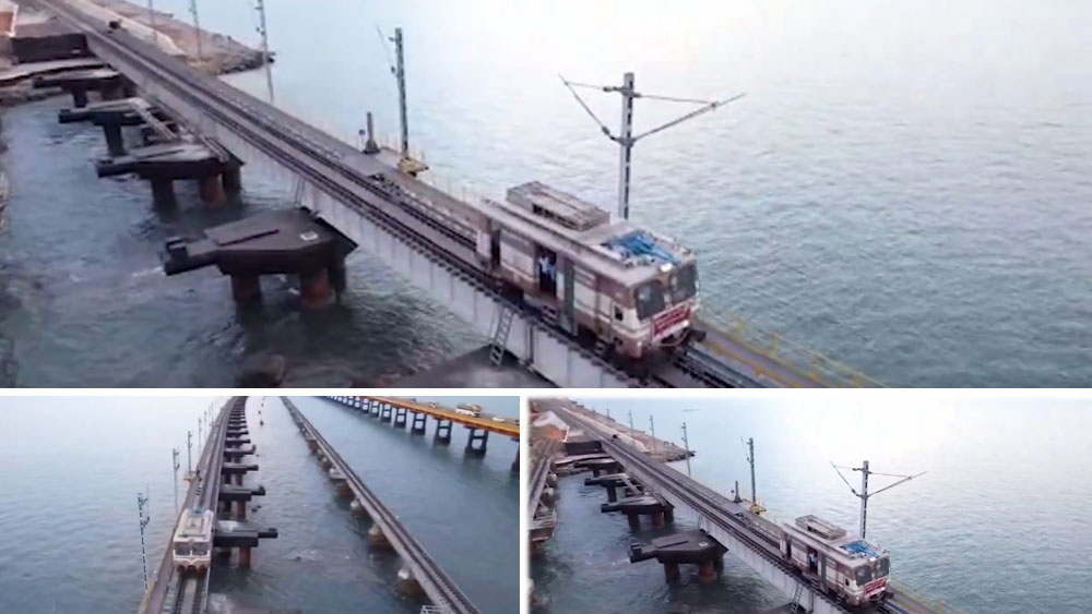 മറ്റൊരു നാഴികക്കല്ല് കൂടി പിന്നിട്ട് ഇന്ത്യൻ റെയിൽവേ. രാമശ്വേരത്തെ പാമ്പൻ റെയിൽവേ കടൽപ്പാലത്തിൽ പരീക്ഷണയോട്ടം വിജയിച്ചു. ഓവർ ഹെഡ് എക്യുപ്മെൻ്റ് (OHE) വിജയകരമായി പരീക്ഷണയോട്ടം നടത്തി. രാമേശ്വരം സ്റ്റേഷൻ വരെയാണ് ട്രയൽ റൺ നടത്തിയത്.