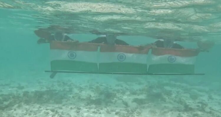 ‘ 78-ാം സ്വാതന്ത്ര്യ ദിനത്തിന്റെ തലേന്ന്, ഇന്ത്യൻ തീരദേശ സേന ഹർഘറിന്റെ ഭാഗമായി ലക്ഷദ്വീപിലെ വെള്ളത്തിന് കീഴിൽ ദേശീയ പതാക ഉയർത്തി. തിരംഗ അഭിയാൻ ‘ എന്ന കുറിപ്പിനൊപ്പമാണ് ഇന്ത്യൻ കോസ്റ്റ് ഗാർഡ് ത്രിവർണ്ണ പതാക ഉയർത്തുന്നതിന്റെ ആവേശകരമായ ദൃശ്യം പങ്ക് വച്ചിരിക്കുന്നത്.