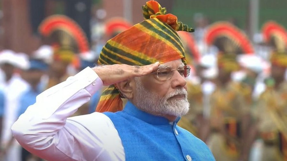 ന്യൂഡൽഹി: ചെങ്കോട്ടയിൽ നടന്ന 78ാമത് സ്വാതന്ത്ര്യ ദിനാഘോഷ ചടങ്ങിൽ രാജ്യത്തെ അഭിസംബോധന ചെയ്ത് സംസാരിക്കുമ്പോൾ അദ്ദേഹത്തിന്റെ വസ്ത്രങ്ങളും വലിയ രീതിയിൽ ശ്രദ്ധ നേടിയിട്ടുണ്ട്. രാജസ്ഥാനി ലെഹരിയ പ്രിന്റ് ഉള്ള തലപ്പാവ് ആയിരുന്നു ഇതിലെ പ്രധാന ആകർഷണം. വെള്ള നിറത്തിലുള്ള കുർത്തയും നീല നിറത്തിലുള്ള ബന്ദ്ഗാല ജാക്കറ്റുമാണ് അദ്ദേഹം ധരിച്ചത്.