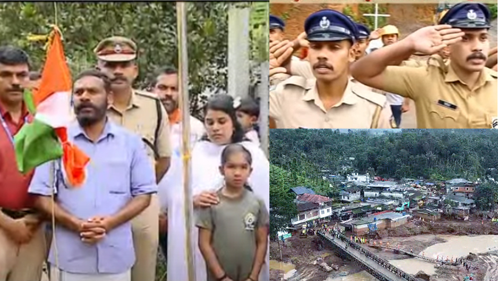 ജനപ്രതിനിധികളും പൊലീസുകാരും ചേർന്നാണ് ചൂരൽമലയിൽ ത്രിവർണപതാക ഉയർത്തിയത്. തുടർന്ന് ദേശീയഗാനം ദുരന്ത ഭൂമിയിൽ അലയടിച്ചു. ഒറ്റക്കെട്ടായി ദുരിതബാധിതരെ കരകയറ്റാനുള്ള ശ്രമത്തിലാണ് കേരളക്കര. ലളിതമായ രീതിയിൽ വയനാട്ടിൽ സ്വാതന്ത്ര്യദിനാഘോഷ പരിപാടികളും സംഘടിപ്പിച്ചു.