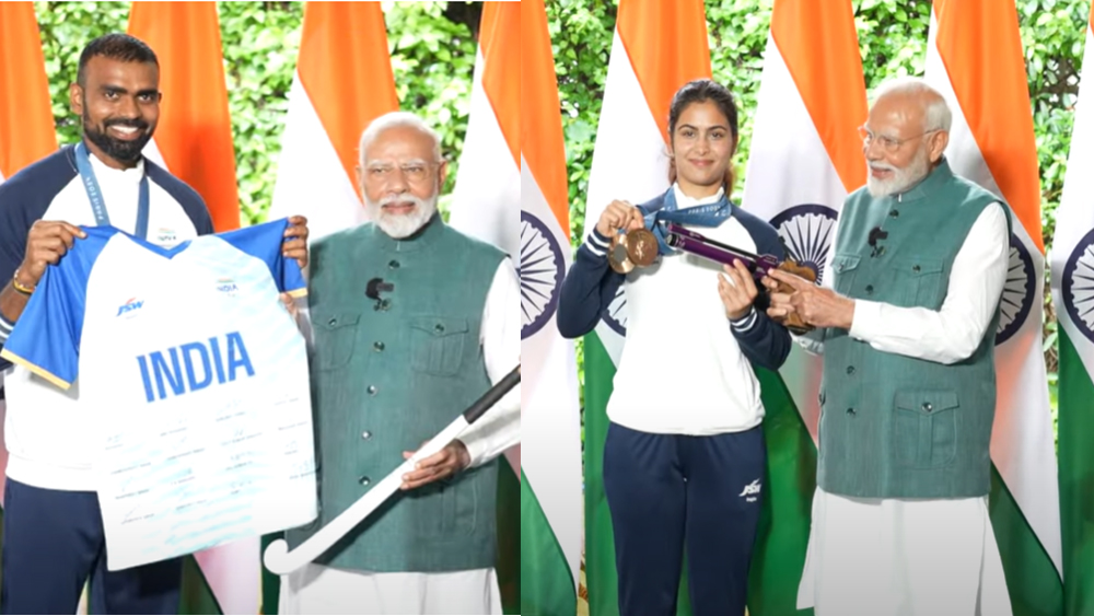 ഹോക്കി ടീമം​ഗങ്ങൾ മെഡലുമായി പ്രധാനമന്ത്രിക്കൊപ്പം ഫോട്ടോയ്‌ക്കും പോസ് ചെയ്തു. രണ്ടു വെങ്കലമെഡൽ നേടി ചരിത്രം സൃഷ്ടിച്ച ഷൂട്ടർ മനു ഭാക്കർ, സരബ്ജ്യോത് സിം​ഗ്, സ്വപ്നിൽ കുസാലെ ​ഗുസ്തി താരം അമൻ സെഹ്റാവത്ത് എന്നിവരും അദ്ദേഹത്തെ കണ്ടിരുന്നു.
