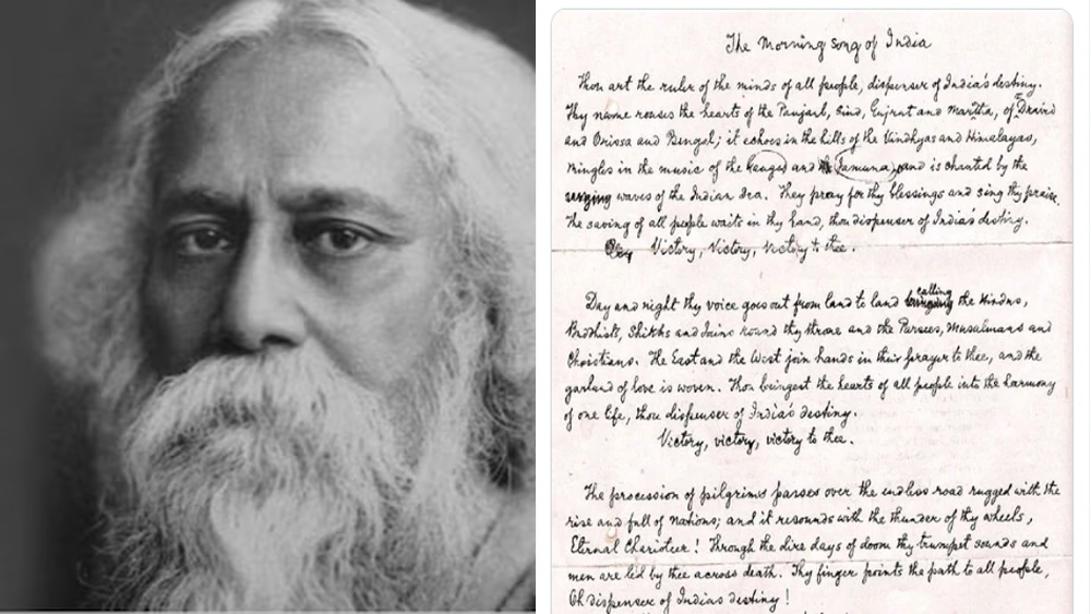 അതിമനോഹരമായ കൈപ്പടയിൽ കഴ്സീവ് സ്റ്റൈലിലാണ് ടാഗോറിന്റെ എഴുത്ത്. 1950 ജനുവരിയിലാണ് ‘ജനഗണമന ഇന്ത്യൻ ഭരണഘടന ദേശീയ ഗാനമായി അംഗീകരിച്ചത്. സ്വാതന്ത്ര്യ സമര ഭടന്മാര്ക്ക് ഉണർവകിയ കവിതയായിരുന്നു ടാഗോറിന്റെ ജനഗണമന. 1912 ജനുവരിയില് തത്വബോധി എന്ന പത്രികയിലാണ് ഭാരോതോ ഭാഗ്യോ ബിധാത’ എന്ന ശീര്ഷകത്തില് ഈ ഗാനം ആദ്യം പ്രസിദ്ധീകൃതമായത്. തത്വബോധിനി പത്രികയുടെ പത്രാധിപര് കൂടിയായിരുന്നു രവീന്ദ്രനാഥ ടാഗോര്. ‘ഭാരോതോ ഭാഗ്യോ ബിധാത’ എന്നത് ദി മോർണിംഗ് സോംഗ് ഓഫ് ഇന്ത്യ’ എന്ന തലക്കെട്ടിലാണ് ടാഗോർ ഇംഗ്ലീഷിൽ പരിഭാഷപ്പെടുത്തിയത്.
