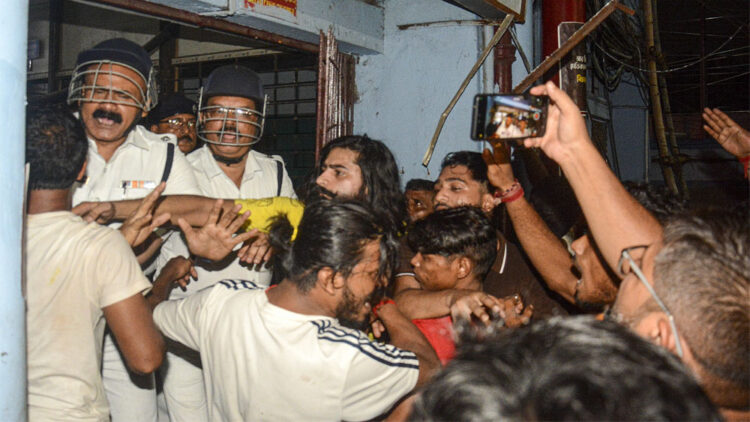 പൊലീസ് പ്രതിഷേധക്കാർക്ക് പിന്നിൽ ഒളിച്ചിരിക്കുകയാണെന്നായിരുന്നു രക്ഷിതാക്കൾക്ക് വേണ്ടി ഹാജരായ അഭിഭാഷകനായ ബികാഷ് രഞ്ജൻ ഭട്ടാചാര്യയുടെ പരിഹാസം. അതേസമയം ഇന്നലെയുണ്ടായ അക്രമസംഭവങ്ങളുമായി ബന്ധപ്പെട്ട് ഒൻപത് പേരെ പൊലീസ് അറസ്റ്റ് ചെയ്തിട്ടുണ്ട്. ആശുപത്രിയിലുണ്ടായിരുന്ന നിരവധി രേഖകൾ ഉൾപ്പെടെ അക്രമികൾ നശിപ്പിച്ചിരുന്നു.