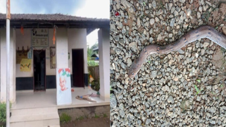 ഇന്ന് രാവിലെയാണ് സംഭവം. കുട്ടികൾ എത്തുന്നതിനു തൊട്ടുമുൻപാണ് പാമ്പിനെ കണ്ടത്. രാവിലെ എത്തിയ അങ്കണവാടി ഹെൽപ്പറാണ് പാമ്പിനെ ആദ്യം കണ്ടത്.