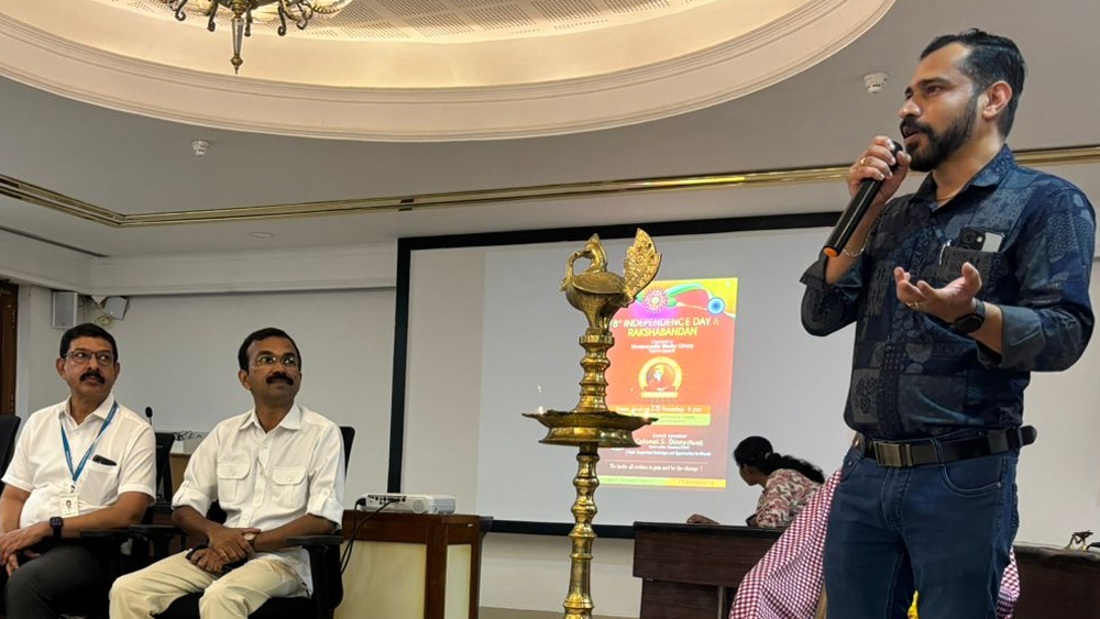 ടെക്നോപാർക്ക് ചീഫ് സെക്യൂരിറ്റി ഓഫീസർ റിട്ട. ലഫ്. കേണൽ സുനിൽ തോമസ് തന്റെ സൈനിക അനുഭവങ്ങൾ പങ്കുവെച്ചു.