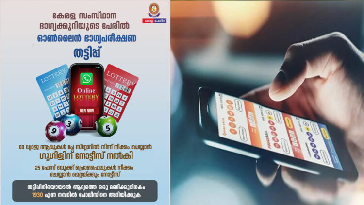 കേരള സംസ്ഥാന ഭാഗ്യക്കുറിയുടെ പേരിൽ ഓൺലൈൻ തട്ടിപ്പ്; വ്യാജ ലോട്ടറി ആപ്പുകൾ പ്ലേസ്റ്റോറിൽ നിന്ന് നീക്കണം; ഗൂഗിളിന് നോട്ടീസ് നൽകി പൊലീസ്