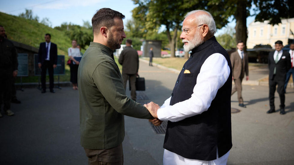 റഷ്യ-യുക്രെയ്ൻ സംഘർഷം തുടരുന്ന സാഹചര്യത്തിൽ യുദ്ധം അവസാനിപ്പിക്കുന്നത് ഉൾപ്പെടെയുള്ള പ്രശ്നപരിഹാര സാധ്യതകളും ഇരു നേതാക്കളും ചർച്ച ചെയ്തു. ഇന്ത്യ ഒരിക്കലും നിഷ്പക്ഷ നിലപാട് സ്വീകരിച്ചിട്ടില്ലെന്നും, എല്ലാക്കാലത്തും സമാധാനത്തിന്റെ പക്ഷത്താണെന്നും പ്രധാനമന്ത്രി പറഞ്ഞു. സംഘർഷം കുറയ്ക്കുന്നതിന് വേണ്ടി ഇന്ത്യ മുന്നിട്ട് നടത്തിയ സമാധാന ചർച്ചകളെ കുറിച്ചും പ്രധാനമന്ത്രി എടുത്ത് പറഞ്ഞു. യുദ്ധവും അക്രമവും ഒന്നിനും പരിഹാരമല്ലെന്നും ചർച്ചകളിലൂടെ തന്നെ ഈ വിഷയത്തിൽ പരിഹാരം കണ്ടെത്തേണ്ടതുണ്ടെന്നും വ്യക്തമാക്കി. ഇരുരാജ്യങ്ങൾക്കുമിടയിലുള്ള സമാധാന ചർച്ചകളുടെ ഭാഗമാകാൻ ഇന്ത്യ തയ്യാറാണെന്നും അദ്ദേഹം അറിയിച്ചിട്ടുണ്ട്.
