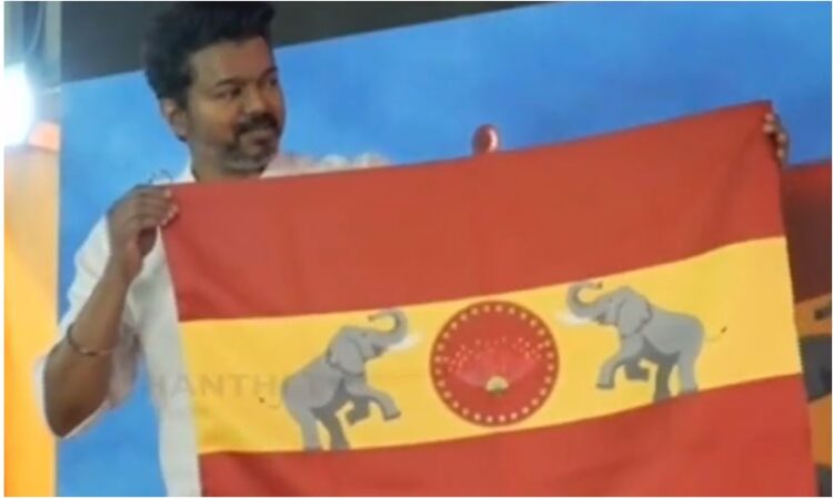 നടൻവിജയ് തമിഴ്നാട് വെറ്റി കഴകം എന്ന പേരിൽ ആരംഭിച്ച പാർട്ടിയുടെ പതാകയും മുദ്രാവാക്യവും ഓഗസ്റ്റ് 22 ന് അവതരിപ്പിച്ചിരുന്നു. ചുവപ്പ്-മഞ്ഞ-ചുവപ്പ് നിറങ്ങളിലുള്ള പതാകയിൽ ഇരട്ട ആനകളും നടുവിൽ ഒരു പുഷ്പവുമാണ് പതാകയുടെ സവിശേഷത.