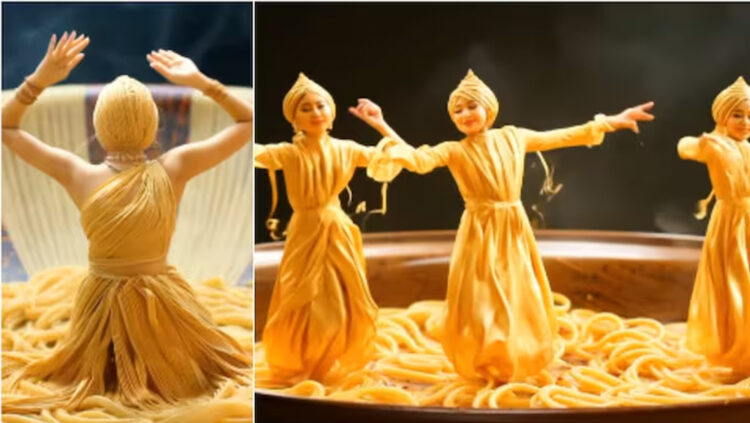 കഴിക്കാൻ മാത്രമല്ല, നൂഡിൽസിനെ കൊണ്ട് നൃത്തവും ചെയ്യിപ്പിക്കാമെന്ന് കാണിച്ചു തരുന്നതാണ് വീഡിയോ. നിർമിത ബുദ്ധി ഉപയോഗിച്ച് നിർമിച്ച വീഡിയോയിൽ നൂഡിൽസിൽ നിന്നും യുവതി-യുവാക്കളുടെ രൂപങ്ങൾ പ്രത്യക്ഷപ്പെട്ട് നൃത്തം ചെയ്യുന്നത് കാണാം. മാതി ബാനി എന്ന മ്യൂസിക്കൽ ബാൻഡാണ് നൂഡിൽസ് ഉപയോഗിച്ച് മനുഷ്യരൂപങ്ങൾ നൃത്തം ചെയ്യുന്ന വീഡിയോ ഇൻസ്റ്റഗ്രാമിൽ പങ്കുവച്ചത്.