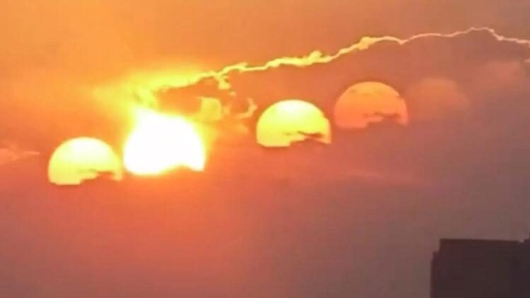 നിമിഷനേരംകൊണ്ട് ഈ ദൃശ്യങ്ങൾ ഇന്റർനെറ്റിൽ പ്രചരിച്ചു. ഒരേ നിരയിൽ ഉദിച്ചുയർന്ന നിൽക്കുന്ന ഏഴ് സൂര്യന്മാർ. ഓരോന്നും പ്രകാശിക്കുന്ന തീവ്രതയിൽ വ്യത്യാസമുണ്ട്. ഒരുമിനിറ്റോളം നീണ്ടു നിൽക്കുന്ന വീഡിയോ കാഴ്ചക്കാരെ അമ്പരപ്പിക്കുന്നതാണ്.