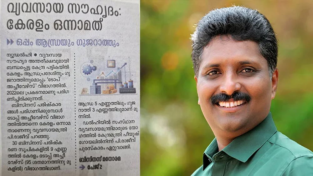 ഡിപ്പാർട്മെന്റ് ഫോർ പ്രമോഷൻ ഓഫ് ഇൻഡസ്ട്രി ആൻഡ് ഇന്റേർണൽ ട്രേഡ് (DPIIT) നൽകുന്ന ബിസിസ് റിഫോംസ് ആക്ഷൻ പ്ലാൻ 2022 (BRAP 22) അവാർഡാണ് കേരളത്തിന് കിട്ടിയത്. അതായത് നിലവിലെ മോശം അവസ്ഥ പരിഹരിക്കുന്നതിന് നടപ്പാക്കിയ പരിഷ്കാരങ്ങളിൽ ഒന്നാമത്. ആകെ 30 ഘടകങ്ങളാണ് പരിശോധിച്ചത്. അതിൽ 9 എണ്ണത്തിൽ ഒന്നാമതെത്തിയത് കേരളമാണ് എന്ന് മാത്രം. അതിൽ തന്നെ ബിസിനസ് കേന്ദ്രീകൃതമായി 2 ഘടകങ്ങൾ മാത്രമാണ് മെച്ചപ്പെട്ടത്. ബാക്കി 7 എണ്ണവും പൗരകേന്ദ്രീകൃതമാണ്. വ്യാവസായിക സൗഹാർദ്ദ അന്തരീക്ഷത്തിന്റെ കാര്യത്തിൽ രാജ്യത്തെ സംസ്ഥാനങ്ങളെ കേന്ദ്ര സർക്കാർ മൂന്നായി തിരിച്ചിട്ടുണ്ട്. അതിൽ മൂന്നാം ഗ്രൂപ്പിലാണ് കേരളം. ഈ അന്തരീക്ഷം മെച്ചപ്പെടുത്താൻ കേന്ദ്രം സംസ്ഥാനങ്ങൾക്ക് ചില കടമ്പകൾ ഏർപ്പെടുത്തി. അതിലാണ് കേരളം സ്ഥാനം മെച്ചപ്പെടുത്തിയത്. അതായത് സിവിൽ സർവീസ് പരീക്ഷയിൽ തോറ്റ ശേഷം പിഎസ്‌സി പരീക്ഷ എഴുതി വിജയിച്ചപ്പോൾ ഐ.എ.എസ് കിട്ടി എന്ന് അവകാശപ്പെടുന്നത് പോലെയുള്ള ഒരു ഗീർവാണം.