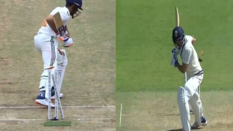 ദുലീപ് ട്രോഫിയിൽ ഇന്ത്യൻ Aയുടെ നായകൻ ശുഭ്മാൻ ഗില്ലിന്റെ പുറത്താകൽ സോഷ്യൽ മീഡിയയിൽ വൈറലായി. ഇന്ത്യൻ ബിക്കെതിരായ മത്സരത്തിലായിരുന്നു വൈറലായ പുറത്താകൽ. മുൻ ആർ.സി.ബി താരമായ നവദീപ് സെയ്നിയാണ് ഗില്ലിന്റെ കുറ്റി തെറിപ്പിച്ചത്. സെയ്നിയുടെ ഓഫ് സ്റ്റമ്പിന് പുറത്ത് പിച്ച് ചെയ്ത പന്ത് ജഡ്ജ് ചെയ്ത ഗിൽ ഫ്രണ്ട് ഫുട്ടിൽ പന്ത് ലീവ് ചെയ്തു.