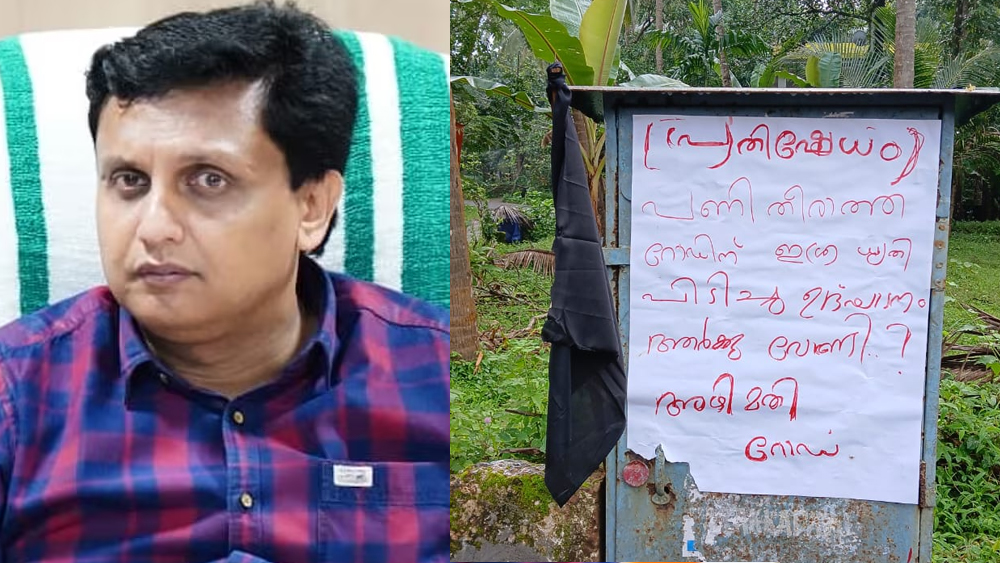 പോസ്റ്ററിനൊപ്പം കരിങ്കൊടിയും കെട്ടിയിട്ടുണ്ട്. പണി തീരാത്ത റോഡിന് ഇത്ര ധൃതി പിടിച്ച് ഉദ്ഘാടനം ആർക്ക് വേണ്ടിയാണെന്ന ചോദ്യമാണ് പോസ്റ്ററിലുളളത്. ഇതിന് പിന്നാലെയാണ് അഴിമതി റോഡെന്ന വിമർശനവും ചേർത്തിരിക്കുന്നത്.