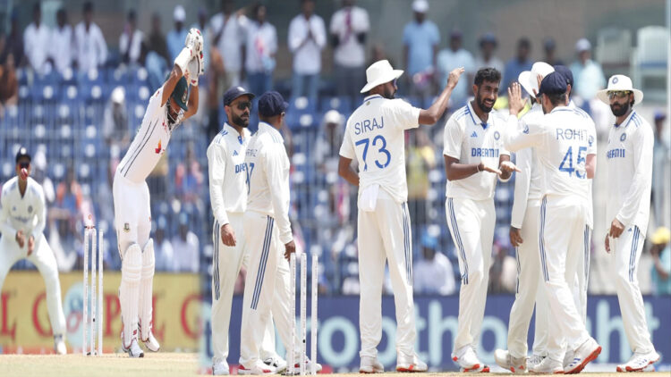 ചെപ്പോക്ക് ടെസ്റ്റിൽ ബംഗ്ലാദേശ് ബാറ്റിംഗ് നിരയുടെ നട്ടെല്ലൊടിച്ച് ഇന്ത്യൻ പേസ് നിര. അതിഥികൾ 47.1 ഓവറിൽ 149ന് പുറത്തായി. നാലു വിക്കറ്റ് പിഴുത ജസ്പ്രിത് ബുമ്രയാണ് ബംഗ്ലാദേശിന്റെ തകർച്ചയ്ക്ക് തുടക്കമിട്ടത്. ആദ്യ ഓവറിന്റെ അവസാന പന്തിൽ ഷദ്മാൻ ഇസ്ലമിന്റെ(2) കുറ്റി തെറിപ്പിച്ചാണ് ബുമ്ര വിക്കറ്റ് വേട്ടയ്ക്ക് ആരംഭിച്ചത്. തൊട്ടടുത്ത പന്തുകളിൽ സക്കിർ ഹസനെ(3)യും മൊനിമുൾ ഹഖിനെയും (0) കൂടാരം കയറ്റി അകാശ്ദീപ് നിലപാട് വ്യക്തമാക്കി. ഏഴുപേരാണ് ബംഗ്ലാദേശ് നിരയിൽ രണ്ടക്കം കാണാതെ പുറത്തായത്.