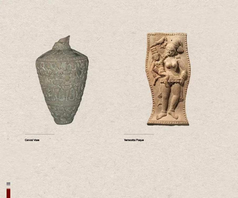 ധ്യാനത്തിലിരിക്കുന്ന ജൈന തീർത്ഥങ്കരൻ, പശുവിനൊപ്പം നിൽക്കുന്ന ആയുധധാരിയായ കൃഷ്ണൻ, കൈകളിൽ പൂമൊട്ട് പിടിച്ചിരിക്കുന്ന യുവതി, സംഗീതോപകരണം വായിക്കുന്ന യുവാവിന്റേയും നൃത്തം ചെയ്യുന്ന യുവതിയുടേയും ചിത്രം, കളിമണ്ണിൽ നിർമ്മിച്ച പാത്രം, മണൽക്കല്ലിൽ നിർമ്മിച്ച അപ്സര എന്നിവ തിരികെ ലഭിച്ച പുരാവസ്തുക്കളിൽ ചിലതാണ്.