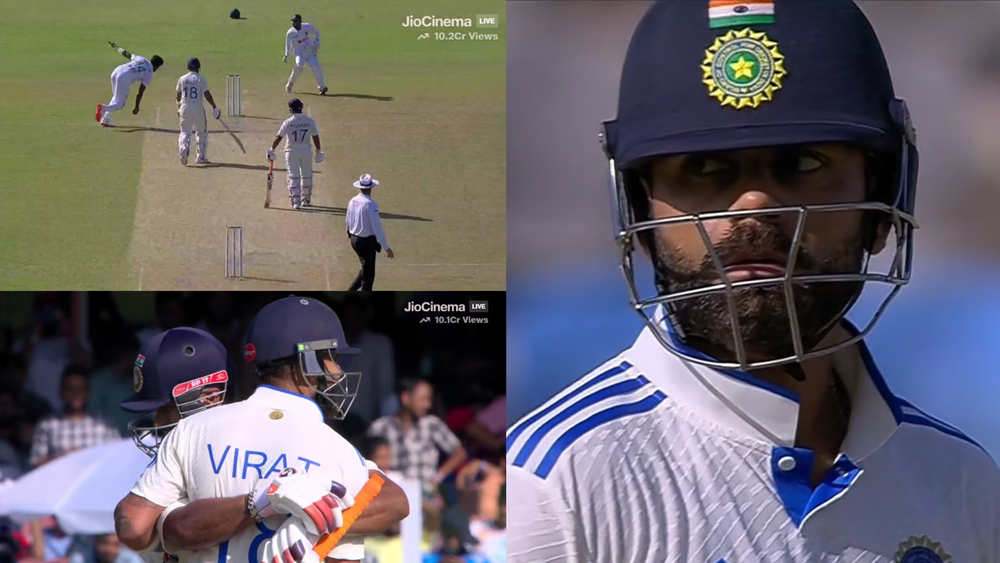 ബംഗ്ലാദേശിനെതിരെയുള്ള കാൺപൂർ ടെസ്റ്റിൽ റണ്ണൗട്ടിൽ നിന്ന് തലനാരിഴയ്ക്ക് രക്ഷപ്പെട്ട് വിരാട് കോലി. ബൗളിംഗ് എൻഡിൽ നിന്ന പന്തുമായുള്ള ആശയകുഴപ്പമാണ് താരത്തെ റണ്ണൗട്ടിന്റെ വക്കിലെത്തിച്ചത്. ഇതാണ് കോലിയെ ദേഷ്യം പിടിപ്പിച്ചത്. ഇന്ത്യൻ ഇന്നിംഗ്സിന്റെ 18-ാം ഓവറിലായിരുന്നു സംഭവം.