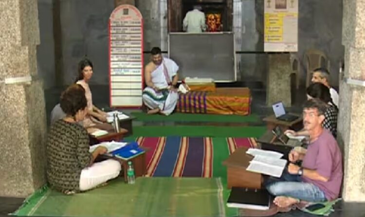 ചിക്കമംഗളൂരു ; ഇന്ത്യയുടെ മണ്ണിനോടും സംസ്കാരത്തോടും വലിയ ബഹുമാനവും അഭിമാനവുമാണ് പല വിദേശപൗരന്മാർക്കുമുള്ളത് . ഇവിടുത്തെ ആചാരങ്ങളും തത്വചിന്തയും ഭാഷയും പഠിക്കാൻ വിദേശ വിദ്യാർത്ഥികൾക്ക് വളരെയധികം താൽപ്പര്യവുമുണ്ട്. ഇപ്പോഴിതാ ഇസ്രയേലിൽ നിന്നുള്ള വിദ്യാർഥികളാണ് സംസ്കൃതം പഠിക്കാൻ ഹിരേമംഗളൂരു കോദണ്ഡരാമചന്ദ്ര സ്വാമി ക്ഷേത്രത്തിലെത്തിയിരിക്കുന്നത്. . പൂർണ്ണമായും ഇന്ത്യൻ സംസ്കാരത്തിലും ആചാരങ്ങളിലും പാരമ്പര്യങ്ങളിലും താല്പര്യം പ്രകടിപ്പിക്കുന്ന ഇസ്രായേൽ പൗരന്മാരാണിവർ.