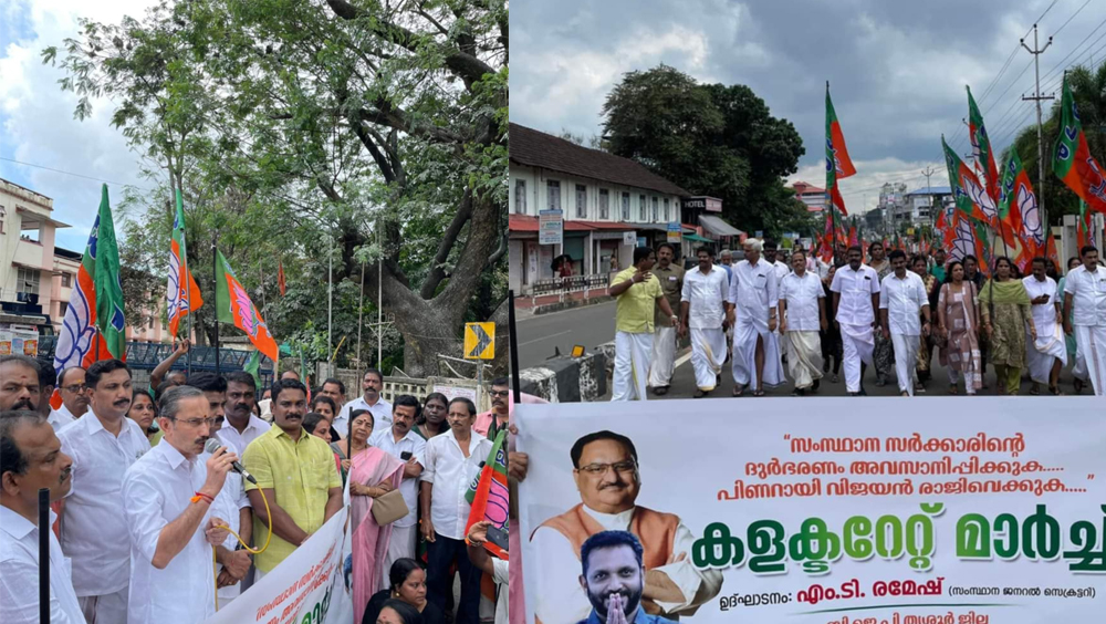 തൃശൂർ: മുഖ്യമന്ത്രിയുടെ ഓഫീസും മുഖ്യമന്ത്രിയും ചേർന്ന് സംസ്ഥാനം കൊള്ളയടിക്കുകയാണെന്ന് തുറന്നടിച്ച് ബിജെപി സംസ്ഥാന ജനറൽ സെക്രട്ടറി എം ടി രമേശ്. കള്ളക്കടത്തിന് നേതൃത്വം കൊടുക്കുന്നത് മുഖ്യമന്ത്രിയുടെ ഓഫീസാണെന്നും സ്വർണക്കടത്തിൽ മുഖ്യമന്ത്രിയുടെ ഓഫീസിന്റെ പങ്ക് വ്യക്തമാണെന്നും അദ്ദേഹം ആരോപിച്ചു. ബിജെപി തൃശൂർ ജില്ലാ കമ്മിറ്റിയുടെ നേതൃത്വത്തിൽ നടക്കുന്ന കളക്ടറേറ്റ് മാർച്ച് ഉദ്ഘാടനം ചെയ്യുകയായിരുന്നു അദ്ദേഹം.