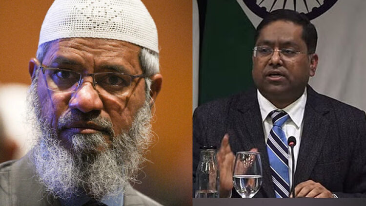 ” സാക്കിർ നായക്കിനെ പാകിസ്താൻ എങ്ങനെ സ്വീകരിച്ചുവെന്ന് നാം കണ്ടതാണ്. വിവാദ പ്രഭാഷണങ്ങൾ നടത്തി ഇന്ത്യയിൽ നിന്നും പലായനം ചെയ്ത വ്യക്തിയാണ് സാക്കിർ നായിക്ക്. അദ്ദേഹത്തിന്റെ പാകിസ്താൻ സന്ദർശനത്തിൽ ഇന്ത്യയുടെ ഭാഗത്ത് നിന്നും നിരാശ രേഖപ്പെടുത്തുന്നു. എന്നാൽ ഇന്ത്യയിൽ നിന്നും പലായനം ചെയ്ത പിടികിട്ടാപുള്ളിക്ക് പാകിസ്താൻ ഗംഭീര വരവേൽപ്പ് നൽകിയതിൽ അതിശയിക്കാൻ ഒന്നുമില്ല.”- രൺധീർ ജയ്സ്വാൾ പറഞ്ഞു.