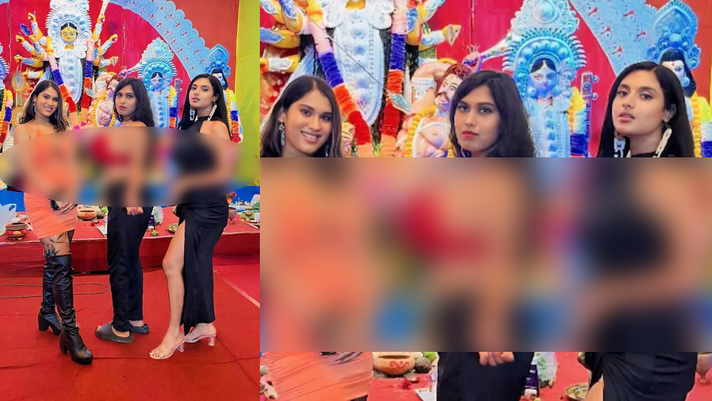 മോഡലുകളായ ഹിമോശ്രീ ഭദ്ര, സന്നാതി മിത്ര എന്നിവരും ഇവരുടെ സുഹൃത്തായ മറ്റൊരു യുവതിയും ചേർന്ന് ദുർഗാപൂജാ പന്തലിൽ വച്ച് പകർത്തിയ ഫോട്ടോയാണ് വിവാദത്തിനാധാരം. ഭദ്രയും മിത്രയും ‘മിസ്. കൊൽക്കത്ത’ പട്ടം നേടിയവരാണ്. ഗ്ലാമറസ് വേഷം ധരിച്ച് പന്തലിൽ എത്തി ഫോട്ടോ പകർത്തി സോഷ്യൽമീഡിയയിൽ പങ്കുവച്ചതാണ് യുവതികൾക്കെതിരെ വിമർശനമുയരാൻ കാരണമായത്.