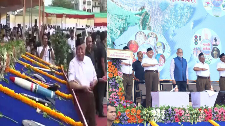 നാഗ്പൂർ: വിജയദശമി ദിനത്തിൽ നാഗ്പൂരിലെ ആർഎസ്എസ് ആസ്ഥാനത്ത് ‘ശസ്ത്ര പൂജ’ നടത്തി സർസംഘചാലക് ഡോ.മോഹൻ ഭാഗവത്. ഐഎസ്ആർഒ മുൻ ചെയർമാൻ ഡോ.കെ.രാധാകൃഷ്ണനാണ് ചടങ്ങിൽ മുഖ്യാതിഥിയായി പങ്കെടുക്കുന്നത്. രാഷ്ട്രീയ സ്വയംസേവക സംഘത്തിന്റെ സ്ഥാപക ദിനം കൂടിയാണ് ഇന്ന്. ആർഎസ്എസ് വിജയദശമി ആഘോഷത്തിൽ പങ്കെടുക്കാനുള്ള ക്ഷണം ലഭിച്ചത് വലിയ അംഗീകാരമായി കാണുന്നുവെന്ന് ഡോ കെ രാധാകൃഷ്ണൻ പറഞ്ഞു.