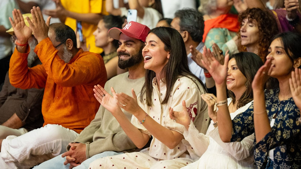 മുൻനിരയിൽ വിരാട് കോലിക്ക് സമീപമിരുന്ന് ആസ്വാദകർക്കൊപ്പം താളം പിടിച്ചും കയ്യടിച്ചും കീർത്തനങ്ങൾ ആസ്വദിക്കുന്ന അനുഷ്കയുടെ ചിത്രമാണ് സംഘാടകർ പുറത്തുവിട്ടത്. ഇരുവരുടെയും സാന്നിധ്യം പരിപാടിയെ കൂടുതൽ സവിശേഷമാക്കിയെന്നും സംഘാടകർ ഇൻസ്റ്റഗ്രാമിൽ കുറിച്ചു. പരിപാടിയിൽ പങ്കെടുത്തവർ ചിത്രീകരിച്ച വീഡിയോകളും എക്സിലും ഇൻസ്റ്റയിലും പ്രത്യക്ഷപ്പെട്ടിട്ടുണ്ട്.