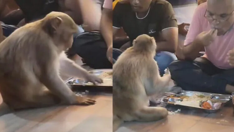 ചോറ് വിളമ്പുന്നവർ കുരങ്ങിനെ മാറ്റാൻ ശ്രമിക്കുമ്പോൾ മദ്ധ്യവയസ്കൻ തടയുന്നതും കാണാം. ‘ ബജ്രംഗ് ബലി തന്നെ ബജ്രംഗ് ബലിയുടെ ക്ഷേത്രത്തിൽ വന്ന് ഭക്ഷണം കഴിക്കുന്നുവെന്ന അടിക്കുറിപ്പോടെയാണ് വീഡിയോ ഇൻസ്റ്റഗ്രാമിൽ പ്രചരിക്കുന്നത്. നിമിഷ നേരങ്ങൾക്കുള്ളിൽ നിരവധിപേരാണ് വീഡിയോ കണ്ടത്.