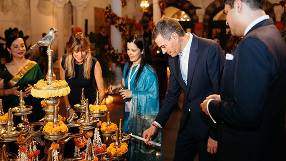 മുംബൈ: ഇന്ത്യൻ സംസ്കാരവും സാങ്കേതികവിദ്യയും നേരിട്ട് കണ്ടറിഞ്ഞും ആസ്വദിച്ചും സ്പെയിൻ പ്രധാനമന്ത്രി പെദ്രോ സാഞ്ചസും ഭാര്യ ബിഗോണ ഗോമസും. കഴിഞ്ഞ ദിവസം രാത്രി മുംബൈയിൽ നടന്ന ദീപാവലി ആഘോഷങ്ങളിൽ ഇരുവരും പങ്കെടുത്തു. ചെരാതുകൾ തെളിയിച്ചും പൂത്തിരി കത്തിച്ചും അവർ ആഘോഷത്തിൽ പങ്കാളികളായി. ലഡ്ഡു ഉൾപ്പെടയുള്ള രുചികരമായ മധുരപലഹാരങ്ങൾ ഇരുവരും ആസ്വദിച്ചു കഴിച്ചു.