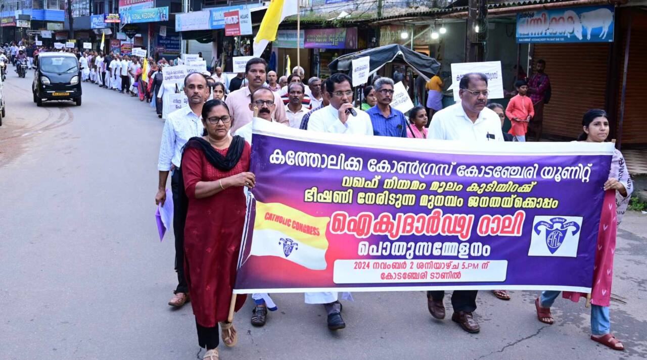 നൂറുകണക്കിനാളുകൾ പങ്കെടുത്ത ഐക്യദാർഢ്യ റാലി കത്തോലിക്ക കോൺഗ്രസ്സ് കോടഞ്ചേരി യൂണിറ്റിന്റെ ആഭിമുഖ്യത്തിലാണ് നടത്തിയത്.