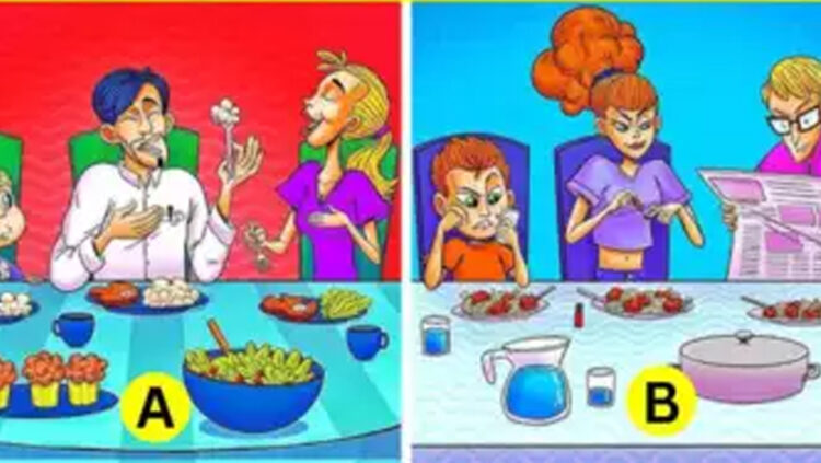 രണ്ട് കുടുംബങ്ങളുടെ ചിത്രങ്ങളാണ് ചുവടെ കൊടുത്തിരിക്കുന്നത്. ഭക്ഷണത്തിന് മുന്നിലിരിക്കുന്ന രണ്ട് കുടുംബങ്ങളെ ചിത്രത്തിൽ കാണാൻ സാധിക്കും. കുടുംബം ഭക്ഷണം ആസ്വദിച്ച് കഴിക്കുമ്പോൾ മറ്റൊരു കുടുംബം ഭക്ഷണം മുന്നിൽ വച്ച് മറ്റ് കാര്യങ്ങളിൽ ഏർപ്പെടുന്നതും കാണാം. എന്നാൽ ഈ ചിത്രങ്ങളിൽ ഒന്ന് കാപട്യം നിറഞ്ഞതാണ്. ഇത് ഏതാണെന്നാണ് നിങ്ങൾ കണ്ടെത്തേണ്ടത്. വേഗം കണ്ടെത്തിക്കോളൂ..