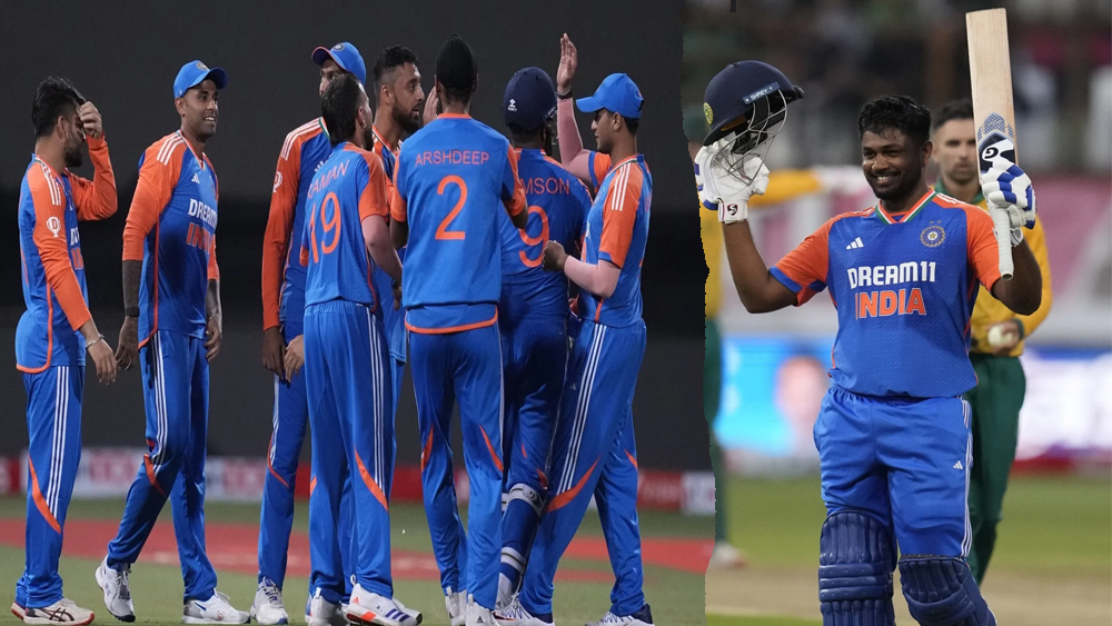 സഞ്ജു സാംസൺ സംഹാര രൂപം പൂണ്ട മത്സരത്തിൽ ഇന്ത്യ നിശ്ചിത ഓവറിൽ എട്ടു വിക്കറ്റിൽ 202 റൺസാണ് നേടിയത്. ടി20യിൽ പ്രോട്ടീസിനെതിരെ ഇന്ത്യ നേടുന്ന ഏറ്റവും ഉയർന്ന ടോട്ടലുമാണിത്. ആദ്യ ഇന്നിംഗ്സിന്റെ മൂന്നാം ഓവറിൽ ഏഴ് റൺസെടുത്ത അഭിഷേക് ശർമയെ നഷ്ടമായെങ്കിലും കരുതലോടെ നീങ്ങിയ സൂര്യകുമാറും സാംസണും ഇന്ത്യൻ സ്കോർ ചലിപ്പിച്ചു. എട്ടാം ഓവറിൽ 21 റൺസെടുത്ത സൂര്യകുമാർ വീണെങ്കിലും പിന്നീട് സഞ്ജു സാംസൺ ആക്രമണം അഴിച്ചുവിടുന്നതാണ് കണ്ടെത്തത്. തിലക് വർമയും (33) ഒപ്പം ചേർന്നു. സാംസൺ-സൂര്യകുമാർ സഖ്യം 37 പന്തിൽ 66 റൺസ് ചേർത്തപ്പോൾ സാംസൺ തിലക് വർമ ജോഡി 34 പന്തിൽ 77 റൺസ് നേടി.