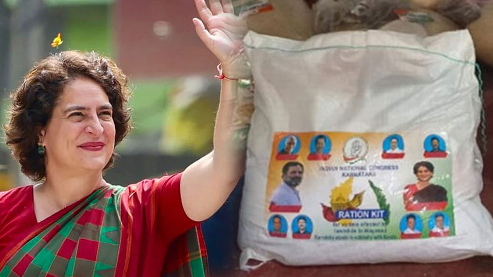 കൽപറ്റ: വോട്ടർമാരെ സ്വാധീനിക്കാനായി വയനാട് ലോക്സഭ മണ്ഡലത്തിൽ തകൃതിയിൽ കിറ്റ് വിതരണം. സ്ഥാനാർത്ഥി പ്രിയങ്ക വാദ്ര, സോണിയ, രാ​ഹുൽ, മല്ലികാർജുൻ ഖാർ​ഗെ തുടങ്ങിയ കോൺ​ഗ്രസ് നേതാക്കളുടെ ചിത്രം പതിച്ചാണ് കിറ്റ് പുറത്തിറക്കിയിരിക്കുന്നത്.