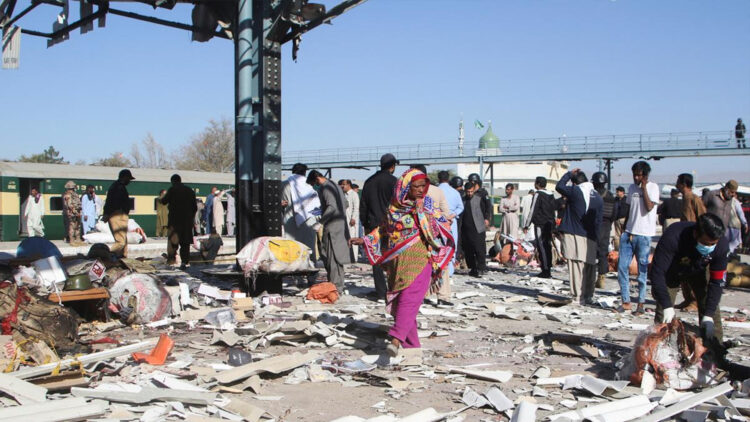 കൊല്ലപ്പെട്ടവരുടെ മൃതദേഹം റെയിൽവേ പ്ലാറ്റ്ഫോമിൽ ചിന്നിച്ചിതറിയ നിലയിലായിരുന്നു. പ്ലാറ്റ്ഫോമിന്റെ മേൽക്കൂര പൂർണമായും തകർന്നുവീണു. പെഷവാറിലേക്ക് പോകാനായി ജാഫർ എക്സ്പ്രസ് പ്ലാറ്റ്ഫോമിൽ നിന്ന് പുറപ്പെടാൻ തുടങ്ങുമ്പോഴാണ് സ്ഫോടനം നടന്നത്. ആക്രമണത്തിന്റെ ഉത്തരവാദിത്വം ബലൂച് ലിബറേഷൻ ആർമി (BLA) ഏറ്റെടുത്തിട്ടുണ്ട്.