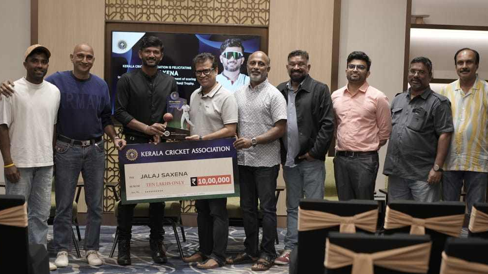 തിരുവനന്തപുരം: രഞ്ജി ട്രോഫിയിൽ 6000 റൺസും , 400 വിക്കറ്റുകളും കരസ്ഥമാക്കിയ കേരള ടീം അംഗം ജലജ് സക്സേനയെ കേരള ക്രിക്കറ്റ് അസോസിയേഷന് ആദരിച്ചു. തിരുവനന്തപുരം ഹയാത് റീജൻസിയിൽ നടന്ന ചടങ്ങിൽ പത്ത് ലക്ഷം രൂപയും മെമന്റോയും കേരള ക്രിക്കറ്റ് അസോസിയേഷന് പ്രസിഡന്റ് ജയേഷ് ജോർജ്ജും സെക്രട്ടറി വിനോദ് എസ് കുമാറും ചേര്ന്ന് ജലജിന് സമ്മാനിച്ചു. 2016-17 സീസൺ മുതൽ കേരള ക്രിക്കറ്റ് അസോസിയേഷന്റെ അംഗമാവുകയും, കേരളത്തിനായി മികച്ച നേട്ടങ്ങള് സ്വന്തമാക്കുകയും ചെയ്ത താരമാണ് ജലജ് സക്സേന.