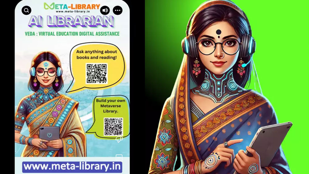 ഇന്ത്യയുടെ ആദ്യ എഐ ലൈബ്രേറിയനായി വേദ (VEDA). വിദ്യാർത്ഥികൾ, അദ്ധ്യാപകർ, ഗവേഷകർ തുടങ്ങി നിരവധി പേരെ സഹായിക്കാൻ വേദ എഐയ്ക്ക് സാധിക്കും. എല്ലാ സമയവും വേദയുടെ സേവനങ്ങൾ ലഭ്യമാകും. എല്ലാവരിലേക്കും അറിവ് ലഭ്യമാക്കുക ലക്ഷ്യമിട്ട് പ്രവർത്തിക്കുന്ന സംഘടനയായ വൺ ലൈബ്രറി പെർ വില്ലേജ് (OLPV) ആണ് വേദ രൂപകൽപന ചെയ്തിരിക്കുന്നത്.