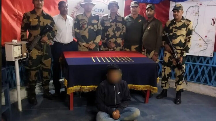 പശ്ചിമ ബംഗാളിലെ നോർത്ത് 24- പർഗാനാസ് ജില്ലയിലാണ് സംഭവം. രഹസ്യവിവരത്തിന്റെ അടിസ്ഥാനത്തിലാണ് ബിഎസ്എഫ് തെരച്ചിൽ നടത്തിയത്. തെരച്ചിൽ പുരോഗമിക്കുന്നതിനിടെ ഒരാൾ വീടിന്റെ പിൻവാതിലിലൂടെ ഓടി രക്ഷപ്പെടാൻ ശ്രമിച്ചു. താക്കീത് നൽകിയിട്ടും അനുസരിച്ചില്ല, പിന്നാലെയൊരു ജവാൻ വെടിയുതിർത്തു. തുടർന്ന് ഇയാൾ കീഴടങ്ങി.