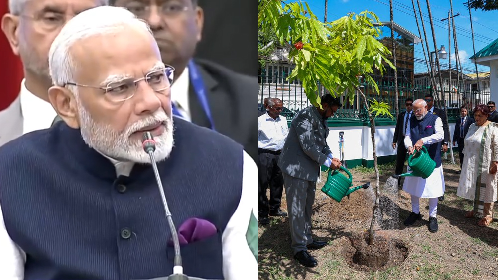 ത്രിരാഷ്‌ട്ര സന്ദർശനത്തിന്റെ മൂന്നാം ഘട്ടത്തിലാണ് പ്രധാനമന്ത്രി ഗയാനയിലെത്തിയത്. ജോർജ് ടൗൺ വിമാനത്താവളത്തിലെത്തിയ പ്രധാനമന്ത്രിയെ ഗയാന പ്രസിഡന്റ് മുഹമ്മദ് ഇർഫാൻ അലിയും കാബിനറ്റ് മന്ത്രിമാരും ചേർന്നാണ് സ്വീകരിച്ചത്. പ്രധാനമന്ത്രിയുടെ ‘അമ്മയുടെ പേരിൽ ഒരു മരം നടാം’ എന്ന പരിപാടിയിൽ മരം നട്ട് അദ്ദേഹം പങ്കെടുത്തിരുന്നു.