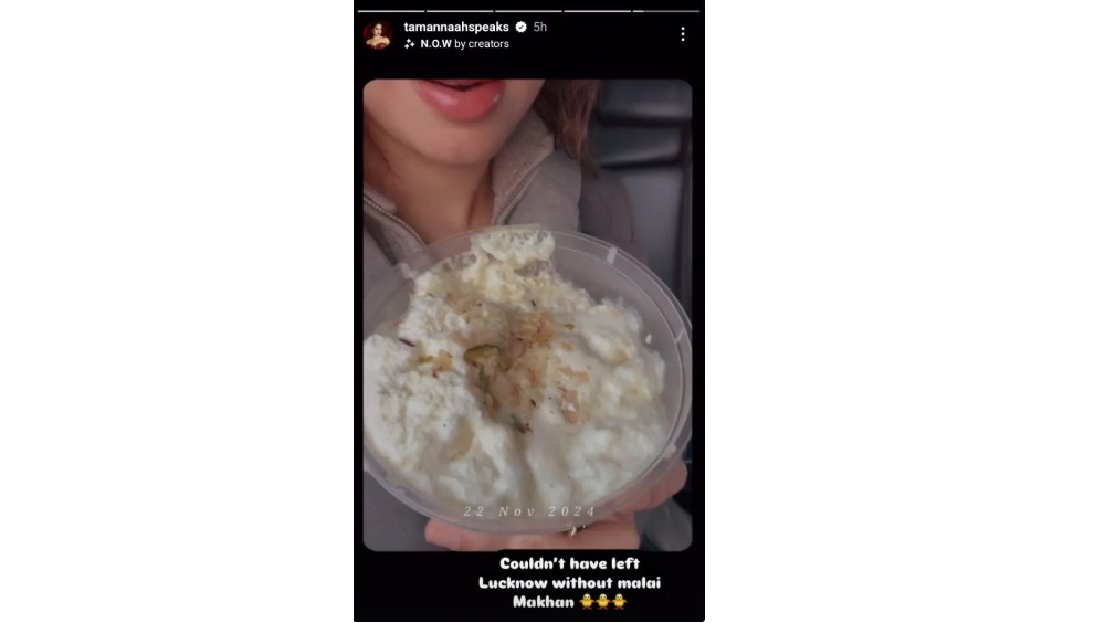 ‘ലക്നൗവിൽ വന്നിട്ട് ഈ ഭക്ഷണം കഴിക്കാതെ പോകുന്നത് എങ്ങനെ’? എന്ന അടിക്കുറിപ്പോടെയാണ് തമന്ന ചിത്രങ്ങൾ പങ്കുവച്ചത്. ലക്നൗവിലെത്തുന്ന ഏതൊരു ഭക്ഷണപ്രേമിയും ആദ്യം കഴിച്ചു നോക്കാൻ ഇഷ്ടപ്പെടുന്ന മലൈ മഖാൻ എന്ന സ്വാദിഷ്ടമായ ഭക്ഷണമാണിത്. ലക്നൗവിന് പുറമെ കാൺപൂരിലും, വാരാണസിയിലും ഏറെ പ്രചാരത്തിലുള്ള ഭക്ഷണമാണിത്. തനിക്ക് ഒരുപാട് ഇഷ്ടപ്പെട്ട ഭക്ഷണമാണിതെന്നും തമന്ന പറയുന്നു.